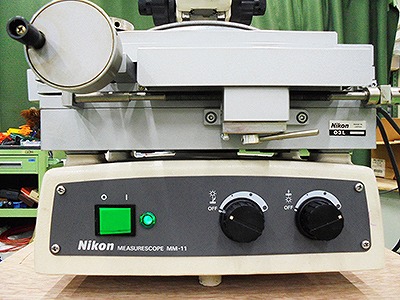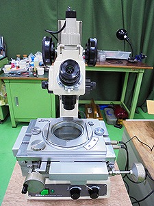 ◇ 入荷 ◇ ボディ全体が少し汚れていました。 サビが多少ありました。 ◇ 分解 及び 清掃 ◇ ステージX軸のハンドルカバーが割れている。 Z軸の送り装置が少し重いです。 電源スイッチが割れている。 全体・各部のクリーニングを実施。 ◇ 組立 及び 精度チェック ◇ X軸の補正スイッチを調整しました。 電源スイッチを交換しました。 X軸のハンドルカバーを交換しました。 組立後完了後に精度チェックを実施。 ※ミクロメータ(測定機の精度を測る原器)を使用して、精度の公差を調べました。