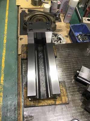 ◇ 入荷 ◇ 北川製 パワーバイスは久しぶりに入荷しました。入荷時点の診断としては、以前使われていたユーザー様の切削粉や油等が付着しておりました。 ここから本体を分解し、バイス内部の状態を診断します。 ボールねじ周り・内部にも切削粉が侵入しており、噛み付き等で傷みがないかを確認しました。(見受けられなかったので全体をクリーニングします!) ◇ 分解・組立 ◇ クリーニングが完了しましたので、口金の再研磨を実施。(口金もコンディションを見て良い場合は再研磨等をしません。)合わせ研磨を行った後に、組み付けとなります。 各パーツのグリスアップも怠らず、最後まで仕上げていきます。 締め付け力の測定(動作確認)をし、完成です。旋盤・フライスといった大型機のみならず、それらに付随する補用機器も分解整備をしております。 ぜひ、店頭にお越し頂き、整備をご覧下さいませ。 ◇ 完成 ◇ 整備完了しました。 実機確認が可能でございます。 お電話にてご予約してくださいませ。