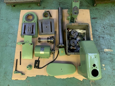 ◇ 入荷 ◇ 入荷時に点検したところ、 故障している部分は見受けられず、 動作上は問題なく良好でした。 しかし、 主軸からの異音が気になりました。 また、油汚れとサビが目立ち、 ベルトの劣化が激しい為に 新規部品に交換する必要が あると診断しました。 入荷時に比べ、より良い機械になるよう、 分解を行っていきます。 ◇ 分解・清掃 ◇ 分解をし、クリーニングを行いました。 分解時にベアリングも外し、新しいものに付け替えました。 交換したことによって主軸からの異音は解消することができました。 ほかにも、劣化したベルトの交換作業も行いました。 ◇ 完成 ◇ 「KIRA 手動タッピング盤KRT-10」の整備が完了しました!!! 試運転も可能ですので 是非、お試し下さいませ。 ご来社心よりお待ち申し上げます。 コロナウイルス感染拡大防止対策も実施しております。 リモートでの対応も 行っていますのでご連絡下さいませ。
