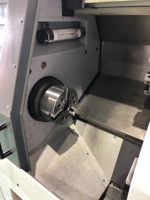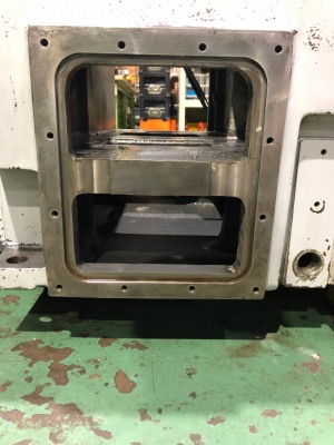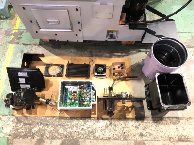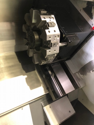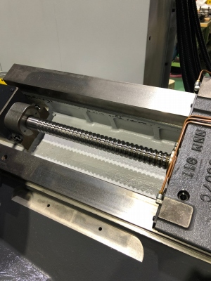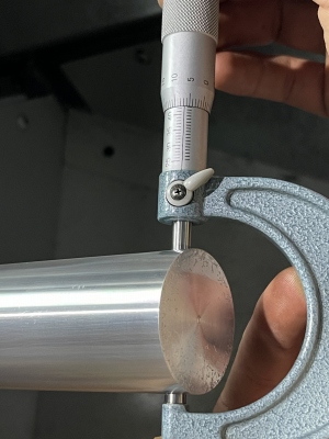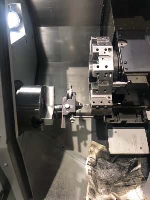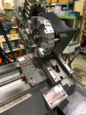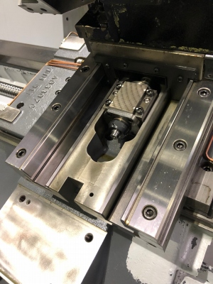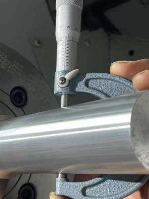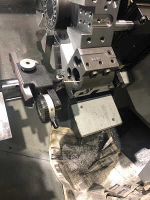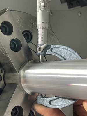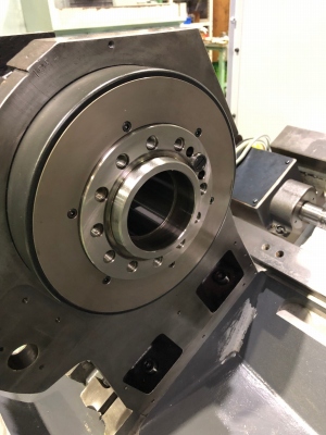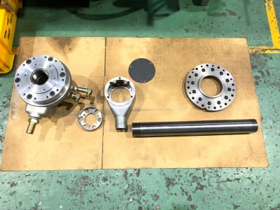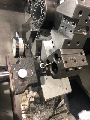 テスト加工後には主軸中心線とボーリングホルダの芯を確認。